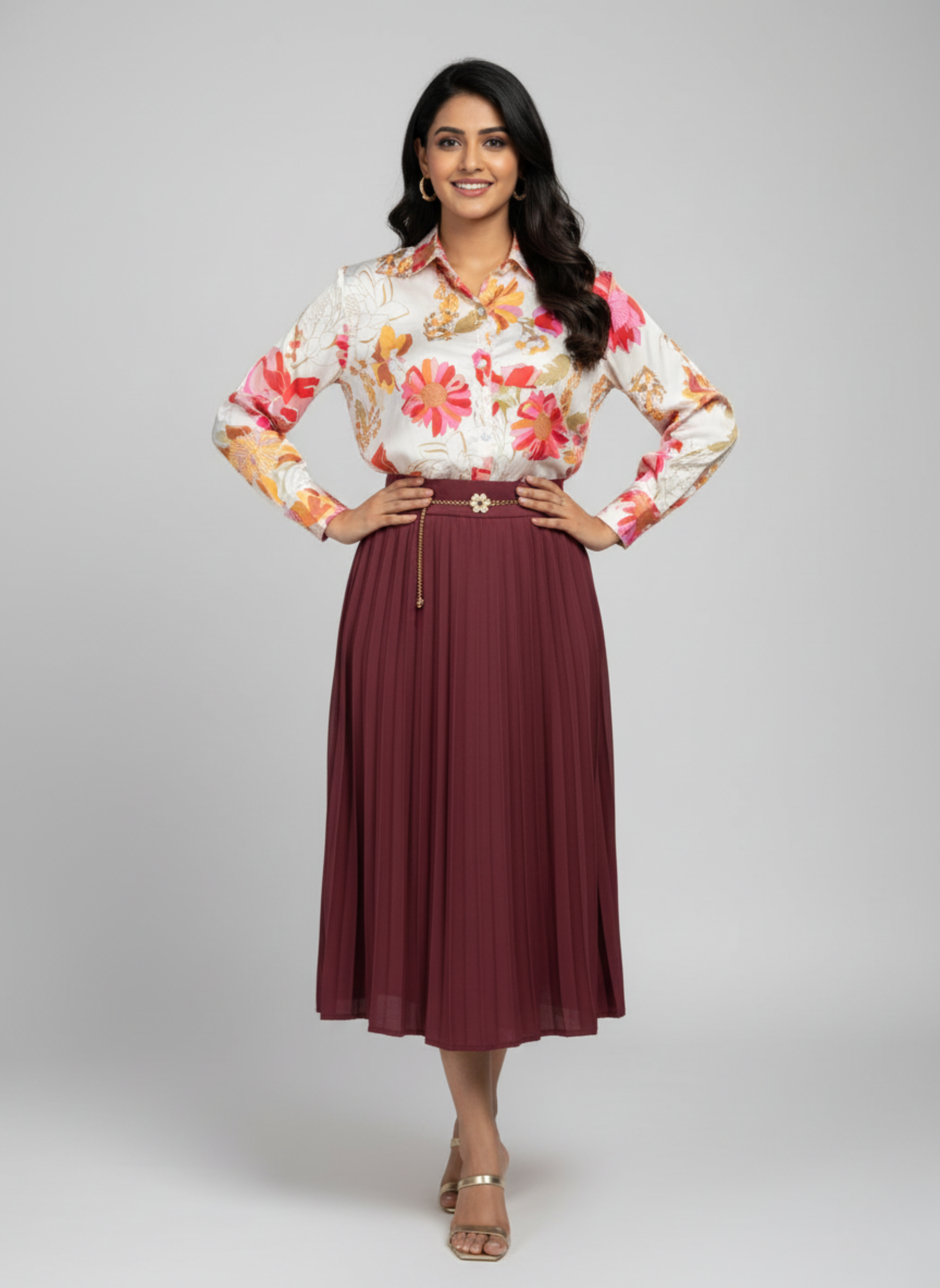 Gray Parrot Tropic Golden Rush – Women's Full Sleeve Floral Satin Shirt